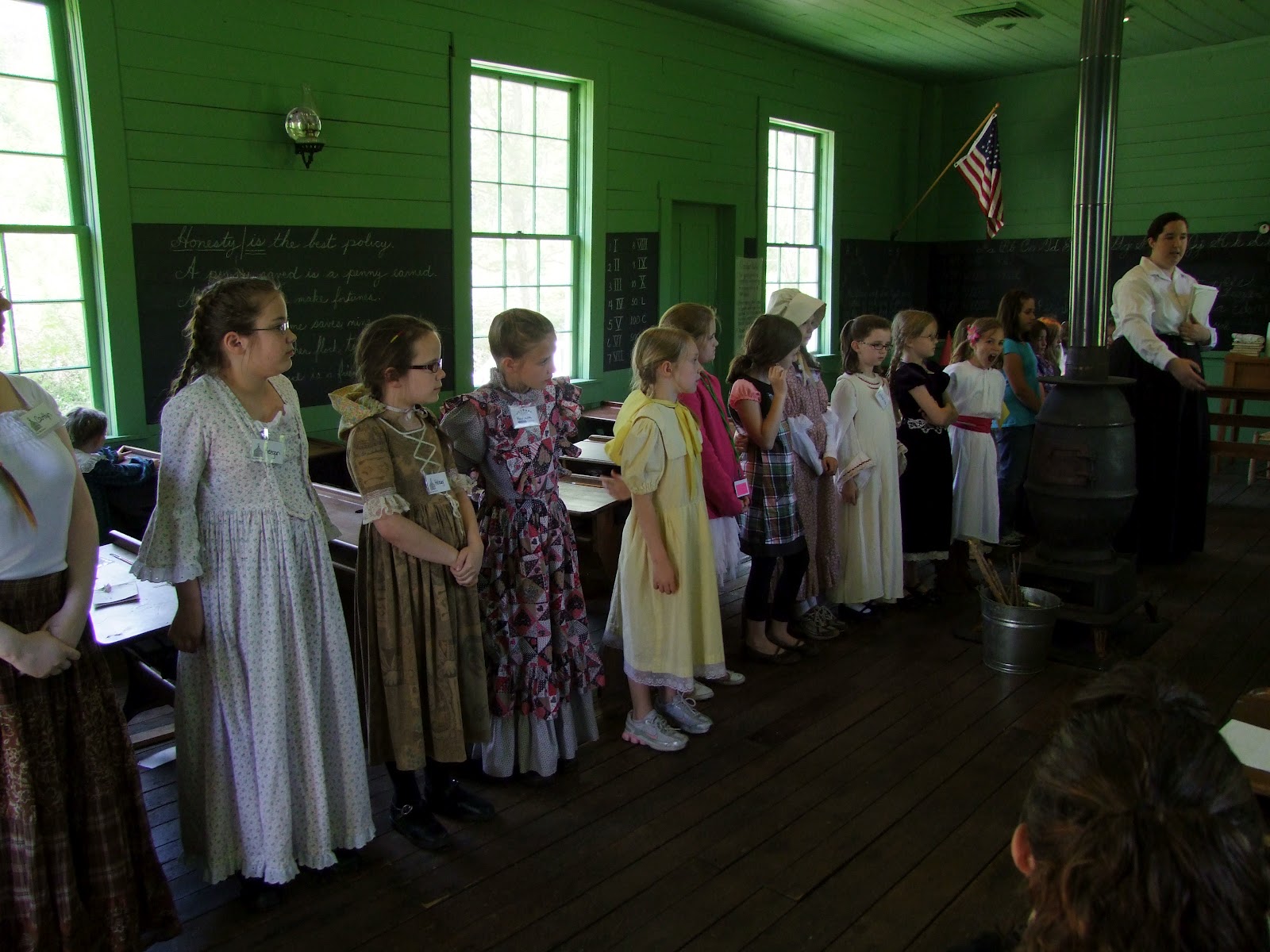 It's awfully neat. The schoolhouse was a genuine one-room schoolhouse for many years. After being abandoned, it was moved and preserved specifically for this purpose. The girls have gotten to go a couple of times and I think it is an awesome way to learn history! Who wouldn't want to play Laura Ingalls for the day????