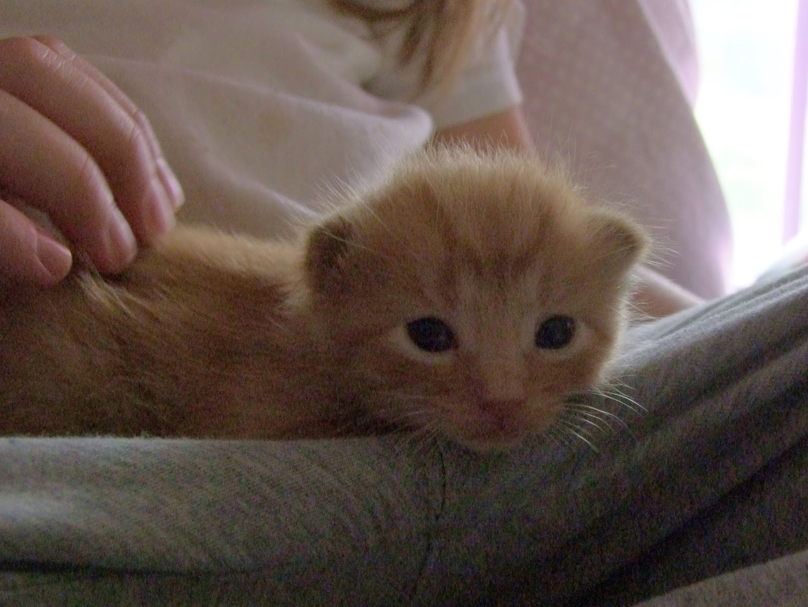 The kittens were so young that their eyes were barely open when they arrived.